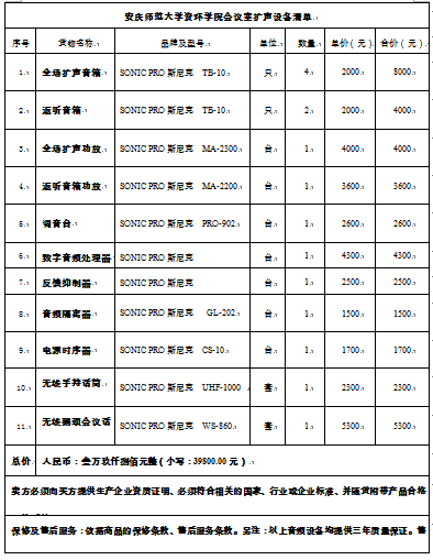 成交供应商名称:安庆三新电子音响工程有限责任公司