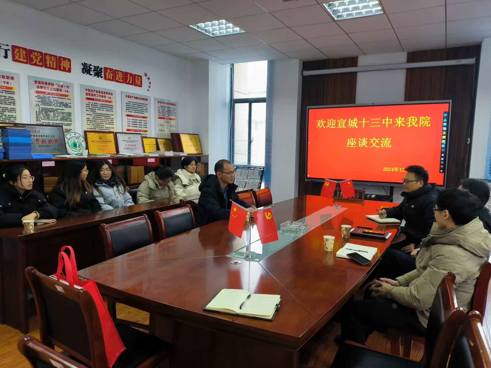 地理科学专业的发展历程和人才培养目标与潘军军老师进行了交流。潘军军老师就地理科学专业师范生的实习过程和宣城十三中的用人需求、薪资待遇等与参会师生进行了相关沟通。