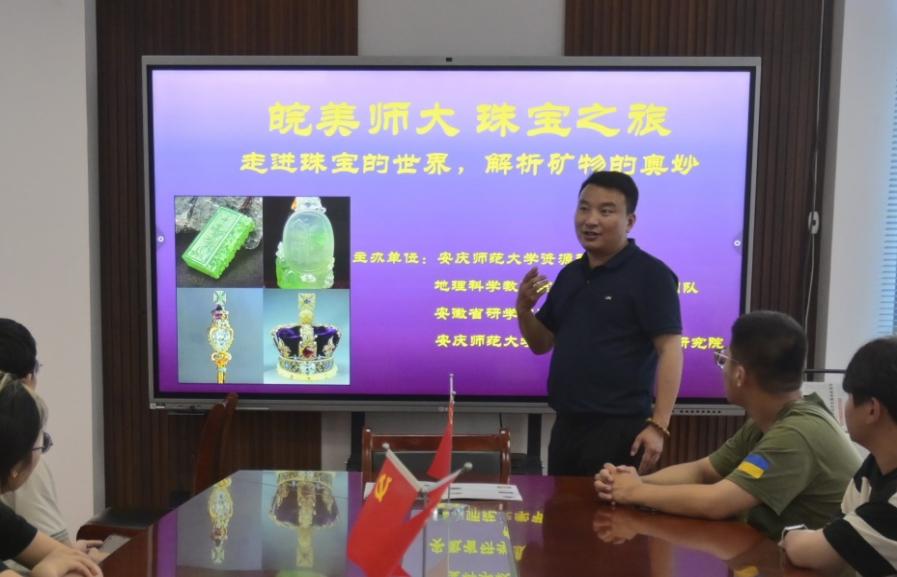 指导“地球科学”系列科普活动“走进珠宝的世界,解析矿物的奥秘”科普展。科普展邀请安徽工业经济职业技术学院副教授、一级宝玉石检测师史磊带来主题讲座和珠宝鉴赏。学院主要负责人、地理教研室全体教师和学生代表近百人参加活动。