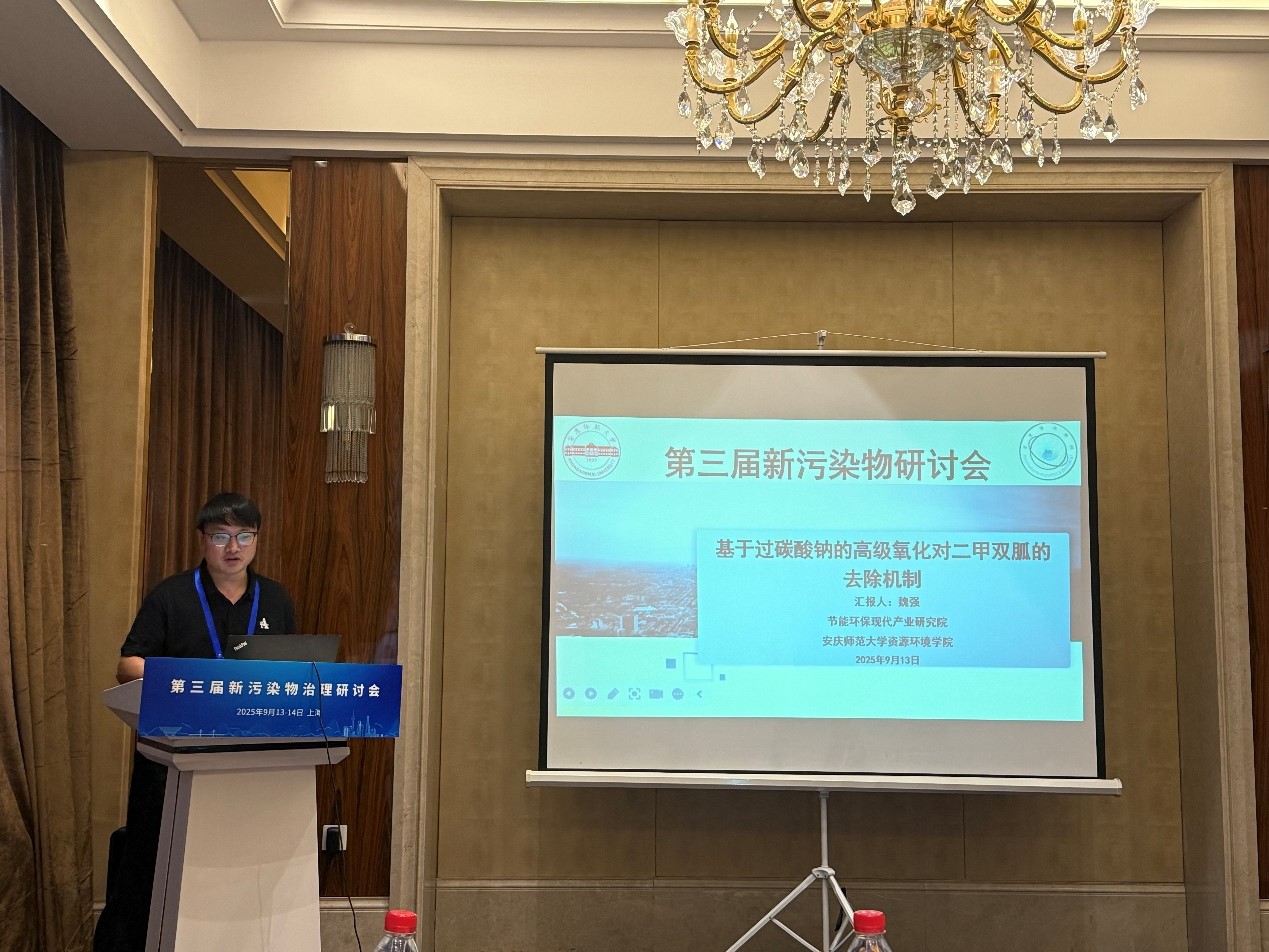汪德进教授担任“抗生素污染的源头控制与处理技术创新”分会场共同召集人。魏强副教授受邀参会并在该分会场作了题为“基于过碳酸钠的高级氧化对二甲双胍的去除机制”的学术报告,系统阐述了二甲双胍在过碳酸钠体系中的反应机理与转化规律、路径调控及副产物毒性评估等关键科学问题,引起了与会专家的广泛关注和高度评价。