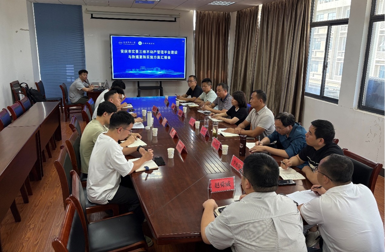 地理科学专业团队详细汇报了《安庆市实景三维不动产管理平台建设与数据更新项目实施方案》。与会单位领导与专家对方案给予了高度评价,并就技术路线、数据标准、更新周期、安全规范及未来应用拓展等方面进行了深入研讨和交流。