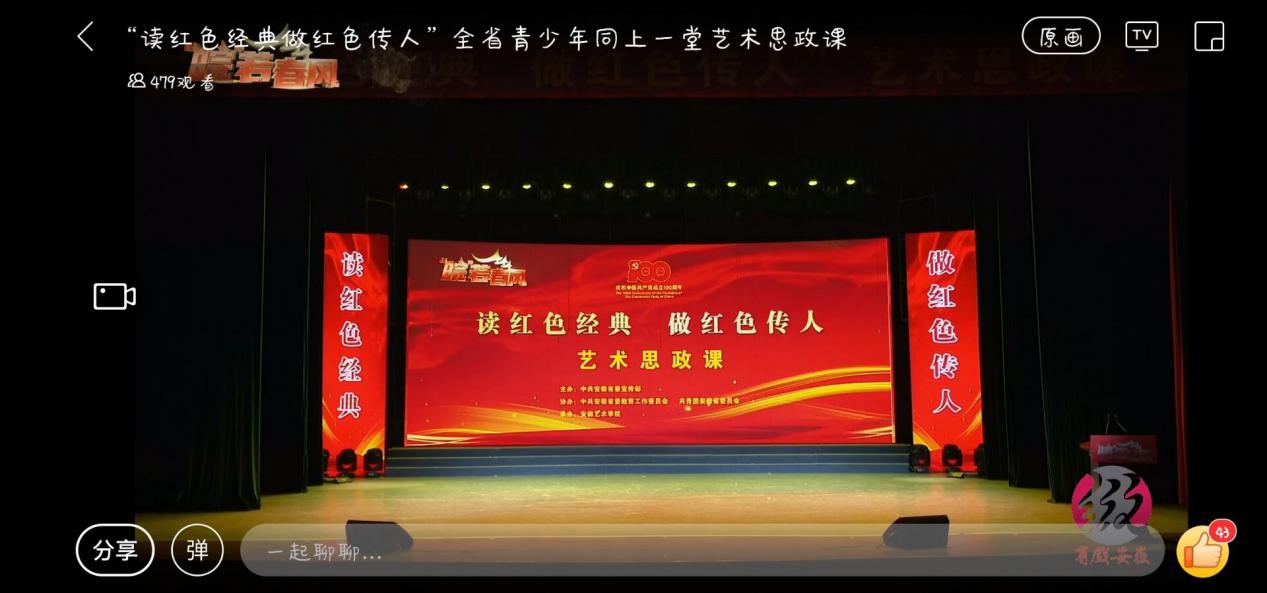 6月3日下午3:00,由省委宣传部、省委教育工委、团省委在安徽艺术学院举办的“读红色经典,做红色传人”主题艺术思政课在线上正式开讲,学院组织青年团员在线上一齐观看。