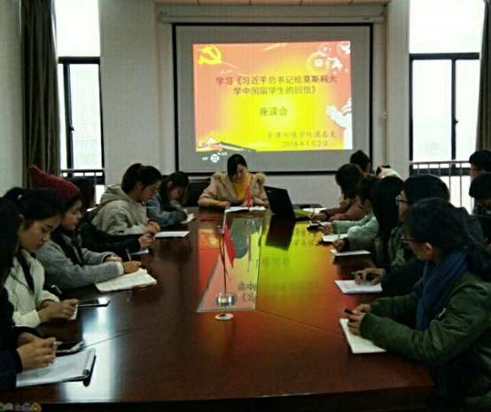 团总支在F316召开学习《习近平总书记给莫斯科大学中国留学生的回信》座谈会,院团总支成员和各班级团支书参加座谈会,会议由团总支负责人程亚运主持。