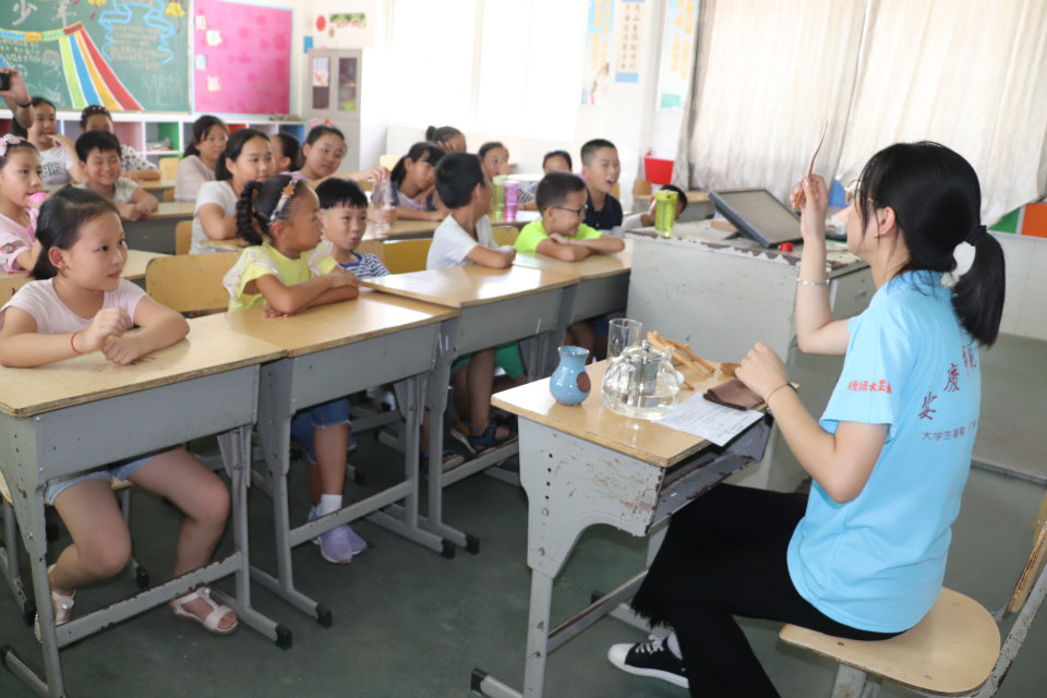 与教师教育学院联合组织的“心手相牵,阳光童行”志愿者在安庆市大观区十里中心学校开展了茶艺文化活动。