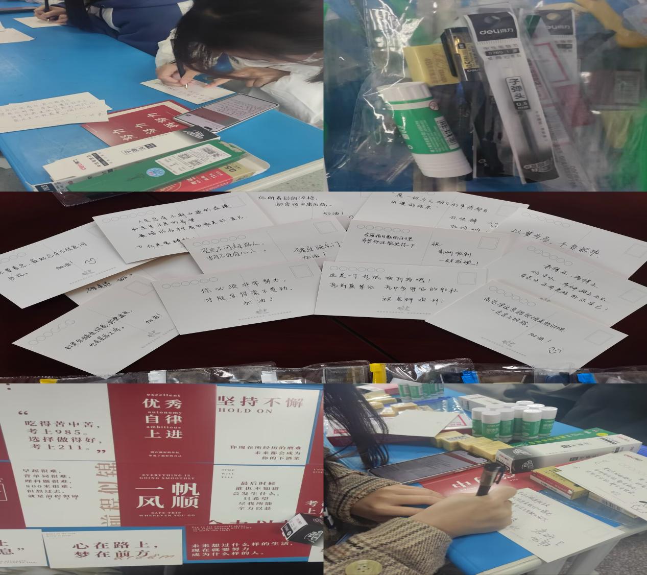 “成功上岸,未来可期。”地理科学专业2022级的余礼娜在卡片上认真描绘一笔一画,写下衷心的祝福,她说:“气温日渐下降,希望学长学姐们在备考的同时也要注意身体,加强锻炼,期待他们都能得偿所愿。”用心写下的祝福贺卡,准备齐全的“百宝箱”文具袋,这些是学院对考研学子最真切的关心与鼓励,活动负责人曹文举表示,组织同学们手写祝福送给即将考研的学长学姐,一方面是想让他们感受到学院以及学弟学妹对他们的支持,为他们增添必胜的信心,另一方面也是希望这些文具能给学生带来切实的帮助。