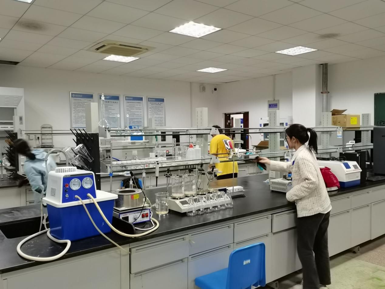 环境检测实验室、酒店管理实验室、土壤与水文实验室……作为一个应用型专业较多的学院,院楼里的实验室成为了学生们主要的清扫对象。在劳动实践开始前,实验室管理教师刘念向学生们简要说明了打扫的注意事项,如实验药品堆放整齐、易碎物品小心拿放、精密仪器不得触碰等。