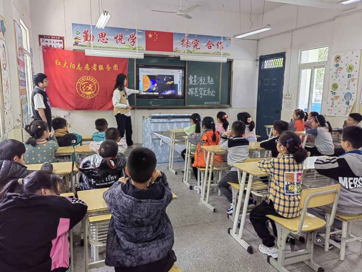 红太阳志愿者服务团赴依泽小学开展“赏星河之魅,探苍穹之秘”主题活动,旨在加强学生对星球的了解,激发孩子们探索宇宙奥秘的兴趣。