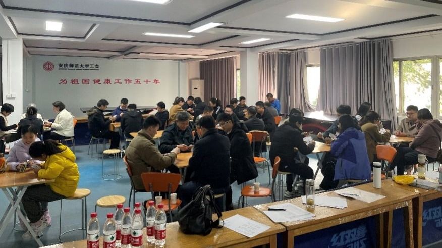 比赛得到了广大教职工的热烈响应,当天共有50余位选手到场参加活动,6位老师志愿服务。比赛分为上下午两场。开赛前现场抽签分组,上午赛段采用循环积分赛制,下午决赛采用单败淘汰制,共决出一等奖1队,二等奖3队,三等奖4队,优胜奖8队。选手们密切配合、沉着应战,对战双方比牌技,比智慧,赛成绩,赛友谊。比赛达到了预期效果,取得了圆满成功,深受教职工的好评。