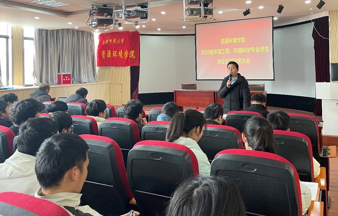 党委副书记黄建平,环境工程、环境科学教研室主任,实习指导老师,辅导员以及2020级全体学生。本次会议由环境科学教研室主任李明主持。