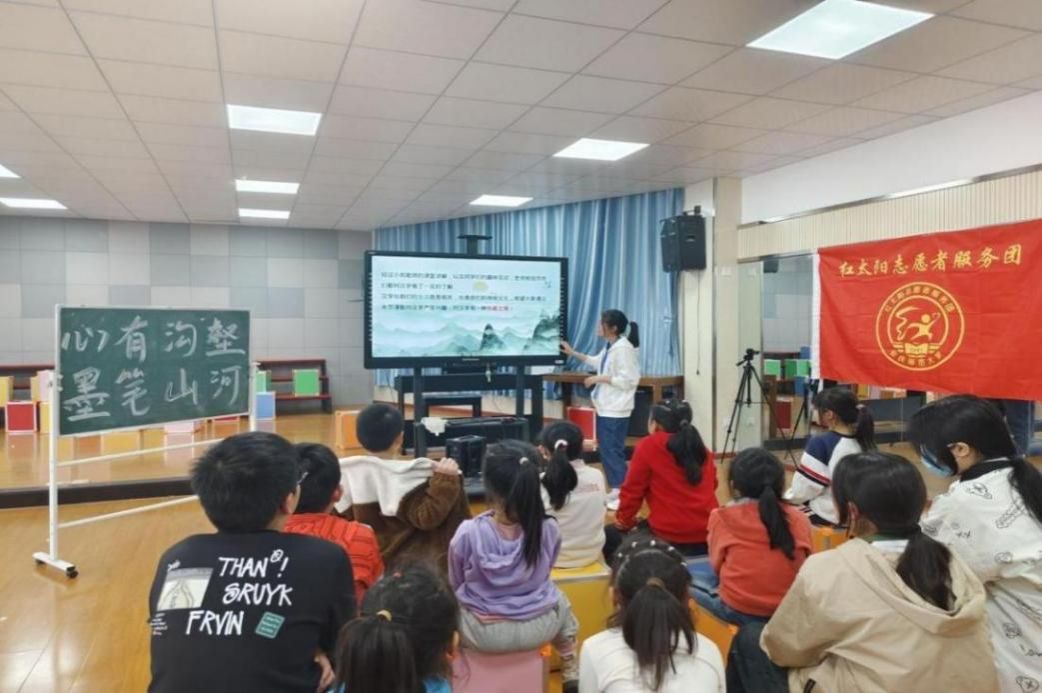 红太阳志愿者服务团赴四照园小学开展“心有沟壑,墨笔山河”主题活动,旨在加深同学们对中国汉字的了解,传承和弘扬中华优秀传统文化。