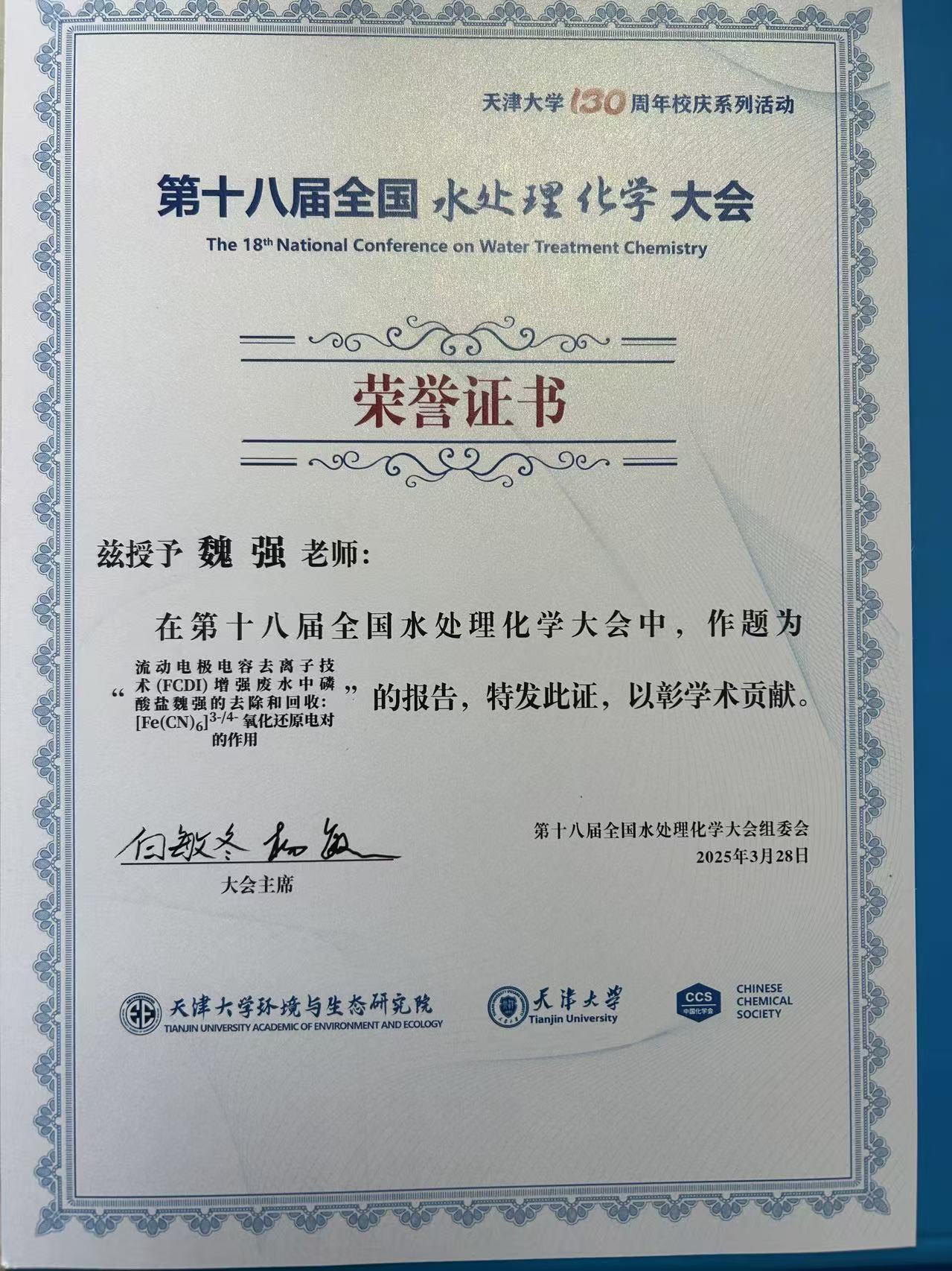 2025年3月28日-30日,第十八届全国水处理化学大会暨学术研讨会在天津举办。本次会议由天津大学和中国化学会应用化学学科委员会主办,以“减污降碳扩绿目标愿景下水处理化学的创新发展”为主题,围绕我国生态文明建设和双碳战略需求,深入探讨水处理化学领域新理论、新技术、新装备、新材料和新模式,以减污降碳扩绿的理念引领水处理技术的创新与低碳发展。老司机论坛