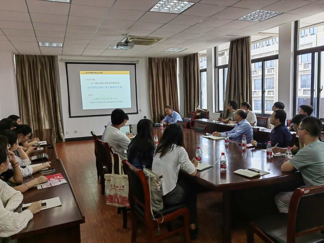 报告会上,吴文革从我国耕地镉污染及稻米镉含量现状入手,提出“在土壤重金属污染修复较难的情况下,如何降低水稻中重金属镉的含量?”的问题,阐述了针对该问题的研究方案与目标,重点分析了不同基因型水稻在不同生长时期各组织内的镉含量的差异及其内在机制,并对研究结果进行总结与展望。此外,吴文革就当前农业领域重点专项任务及设计与参会青年教师开展讨论交流。