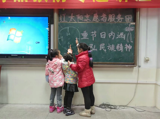 14名红太阳志愿者奔赴依泽小学,开展“重节日内涵,弘民族精神”主题活动。