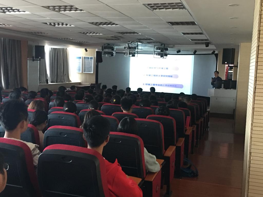 徐志兵教授从环境工程专业的历史背景和由来、环境工程专业所需学习的主要内容、环境工程专业前景这三个方面展开讲述,其中特别强调“学习不仅仅只是学习知识,更多的是从中学习到其思维方法和提高解决问题的能力”,提醒每位学生应明白和持有的学习目的和态度。此外,徐志兵教授对同学们的大学生活提出了几点建议,一是确定学习目标,养成良好的学习习惯,二是积极参与有关专业的活动,提升自身专业能力。最后是现场交流环节,徐志兵教授就同学们提出的一些专业方面的问题做了详细全面的回答。