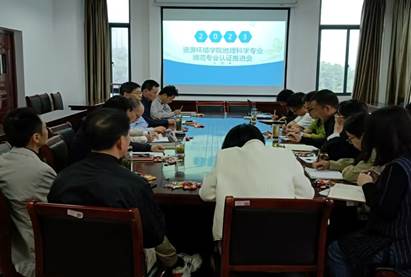 在F414会议室召开地理科学专业认证工作推进会议,学院全体党政领导、地理科学专业全体教师以及学院行政相关人员、辅导员和实验室老师参加了会议,会议由学院副院长金宝石主持。