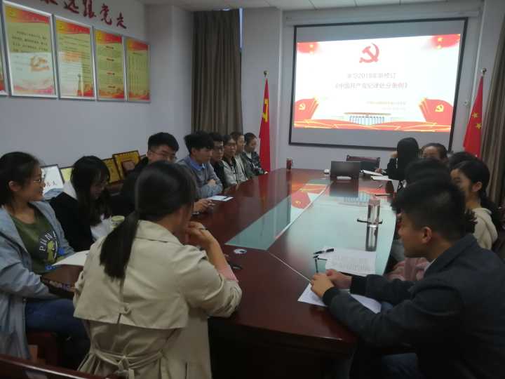学生第三党支部开展主题党日活动,集体学习新修订的《中国共产党纪律处分条例》,学生支部全体党员及预备党员参加学习。