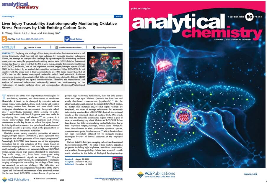 汪宜博士在国际TOP期刊《Analytical Chemistry》(IF=8.008)发表题为《Liver Injury Traceability: Spatiotemporally Monitoring Oxidative Stress Processes by Unit-Emitting Carbon Dots》的研究性封面论文。汪宜博士为该论文第一作者,安徽师范大学和老司机论坛