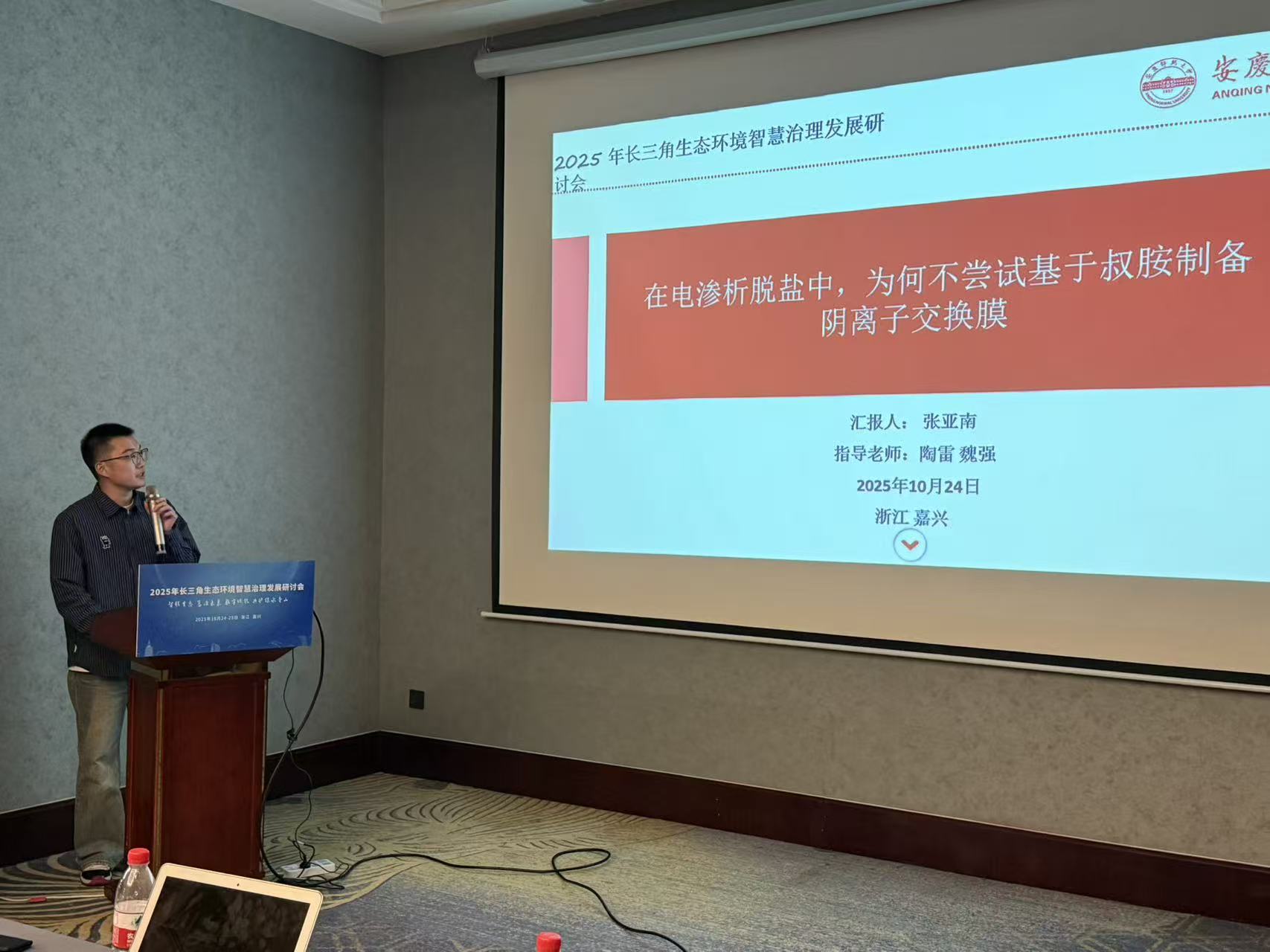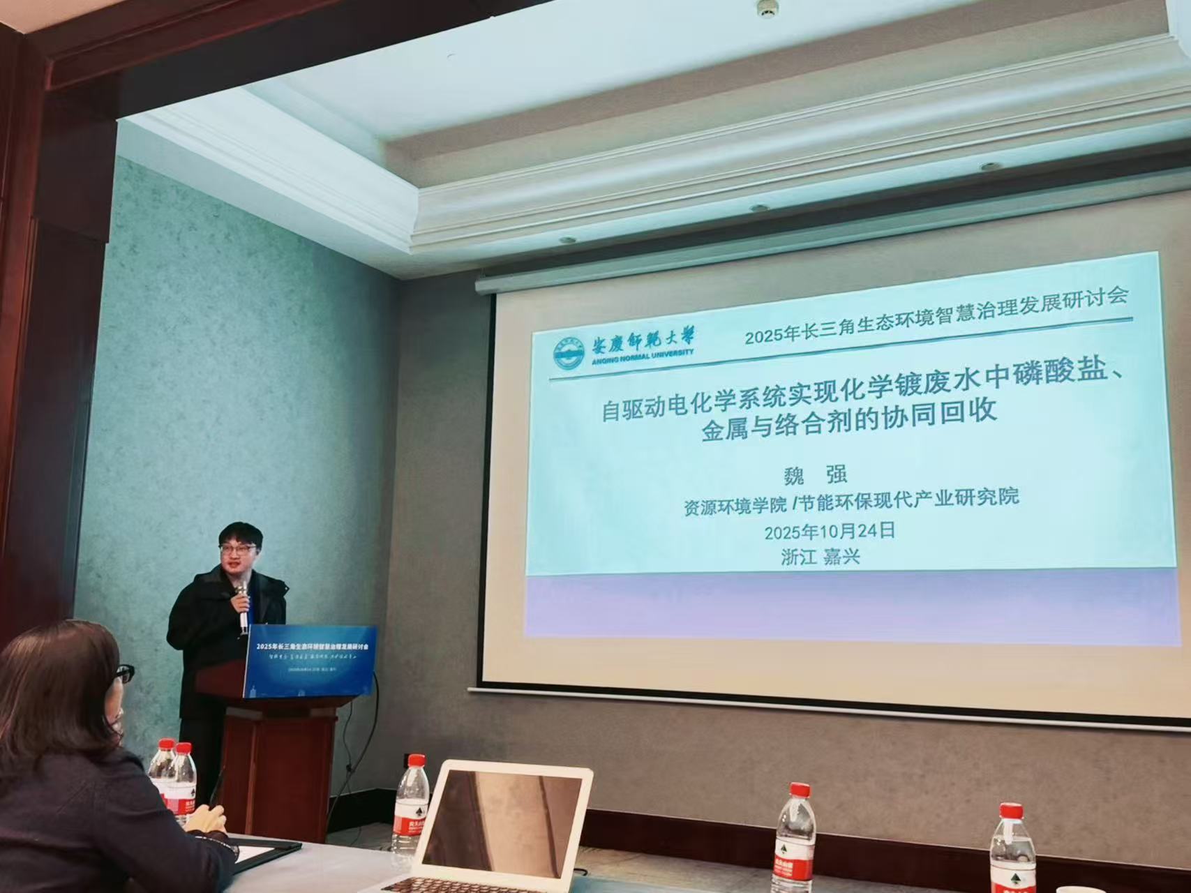 魏强副教授担任“流域综合治理与生态修复技术”分会场召集人,受邀在该分会场作题为“自驱动电化学系统实现化学镀废水中磷酸盐的选择性回收”的学术报告,系统阐述了自驱动电化学系统新技术用于处理化学镀铜废水,并实现对其中磷酸盐(P)、金属铜(Cu)和络合剂(如EDTA)选择性、同步回收。该技术不仅能解决化学镀铜废水的污染问题,还能同步回收高价值的磷、铜等资源,符合循环经济和可持续发展理念。