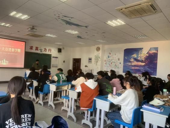 青年是祖国的未来、民族的希望。党的二十大报告意蕴深远,振奋了莘莘学子的心。2023年3月6日,在辅导员陈诚的组织下,我班于下午一点准时开展了“学习党的二十大,奋进新学期”的主题班会,同时也迎来了本学期的第一次班会。我班怀着激动的心情,展开了热烈的讨论,掀起了学习报告精神的热潮。全班同学明白了党的二十大的重要性和影响力,学习了习近平总书记在中国共产党第二十次全国代表大会上的报告。