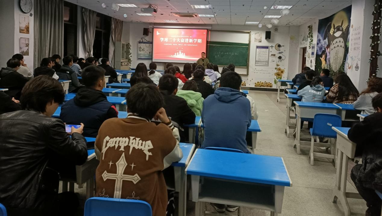 环境与工程类三班四班在F楼207教室,在辅导员陈诚老师的带领下,召开了关于“学习党的二十大,奋进新学期”主题班会。