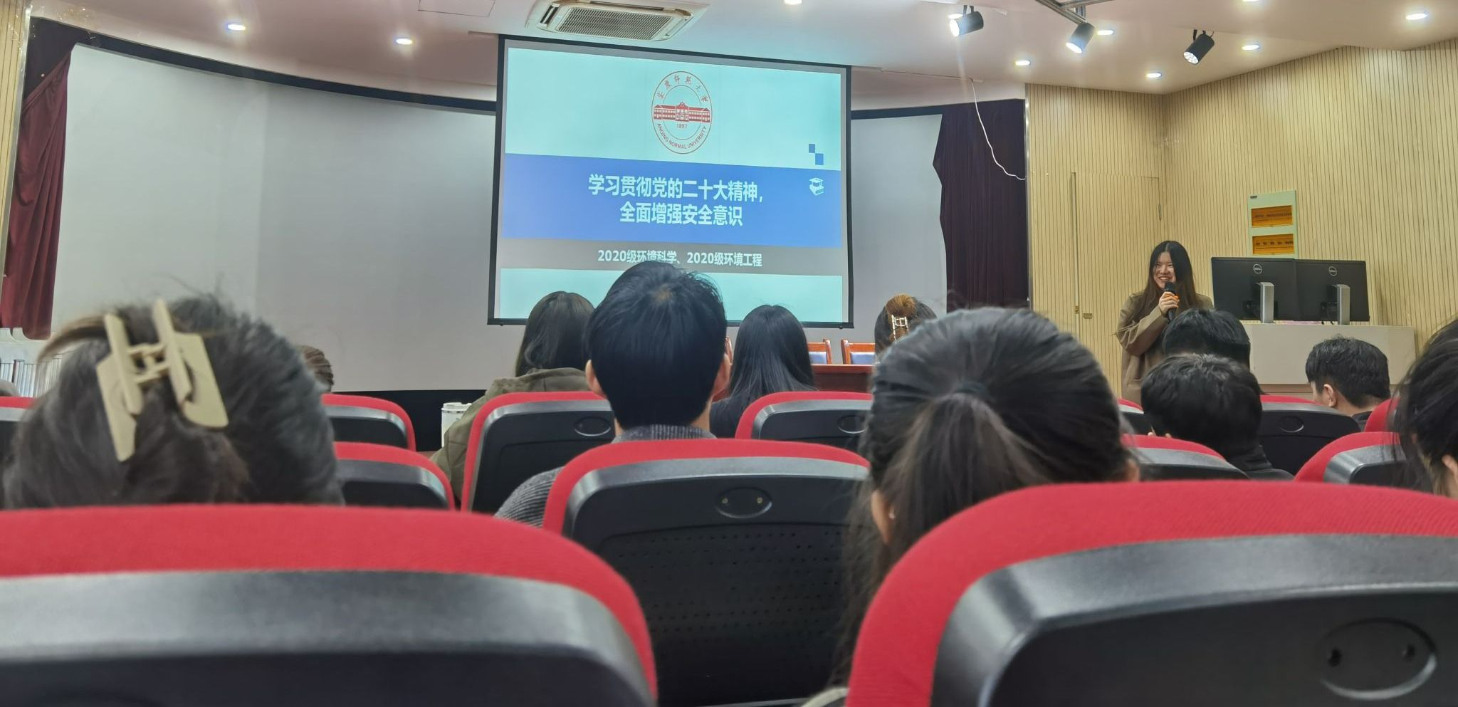 在会议上,2020级环境工程1班王子怡同学分享了自己身边的安全事例,使同学们从中汲取经验教训,提高自己的安全意识。