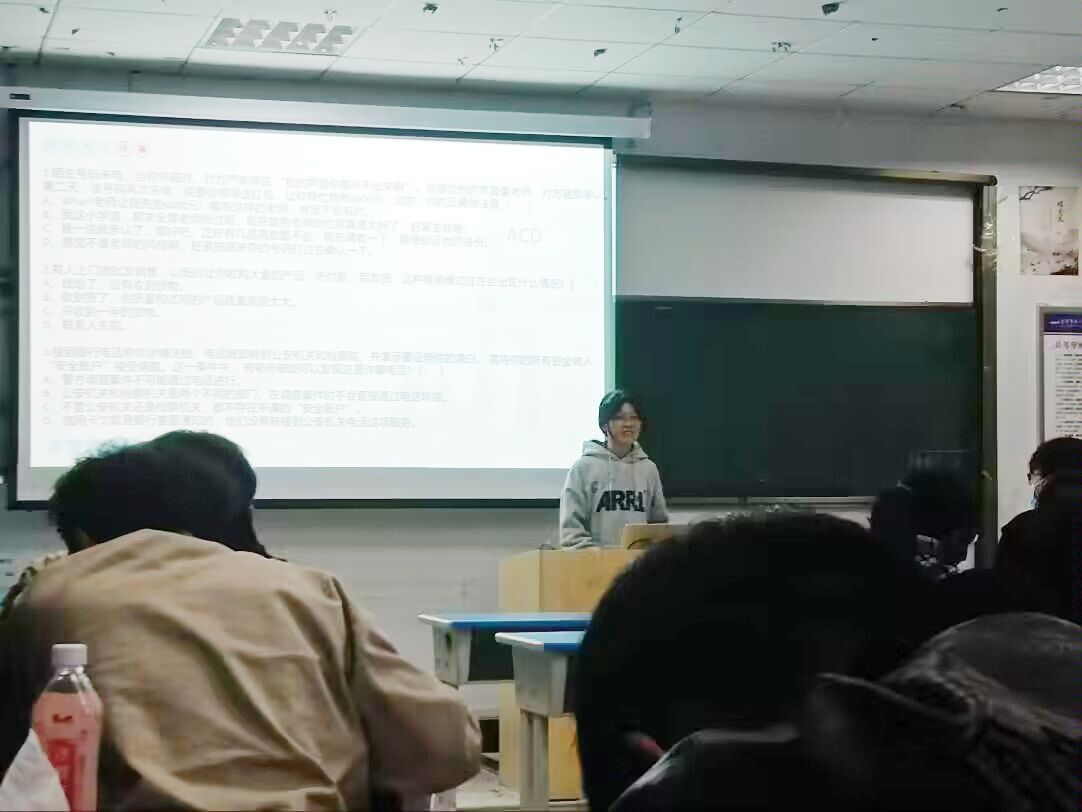 随着时代的发展,信息技术的进步,各种诈骗现象成为社会日益突出的问题。为了提高大学生的防范意识,4月25日晚,22级环境科学与工程类三班班长王静如同学在老司机论坛