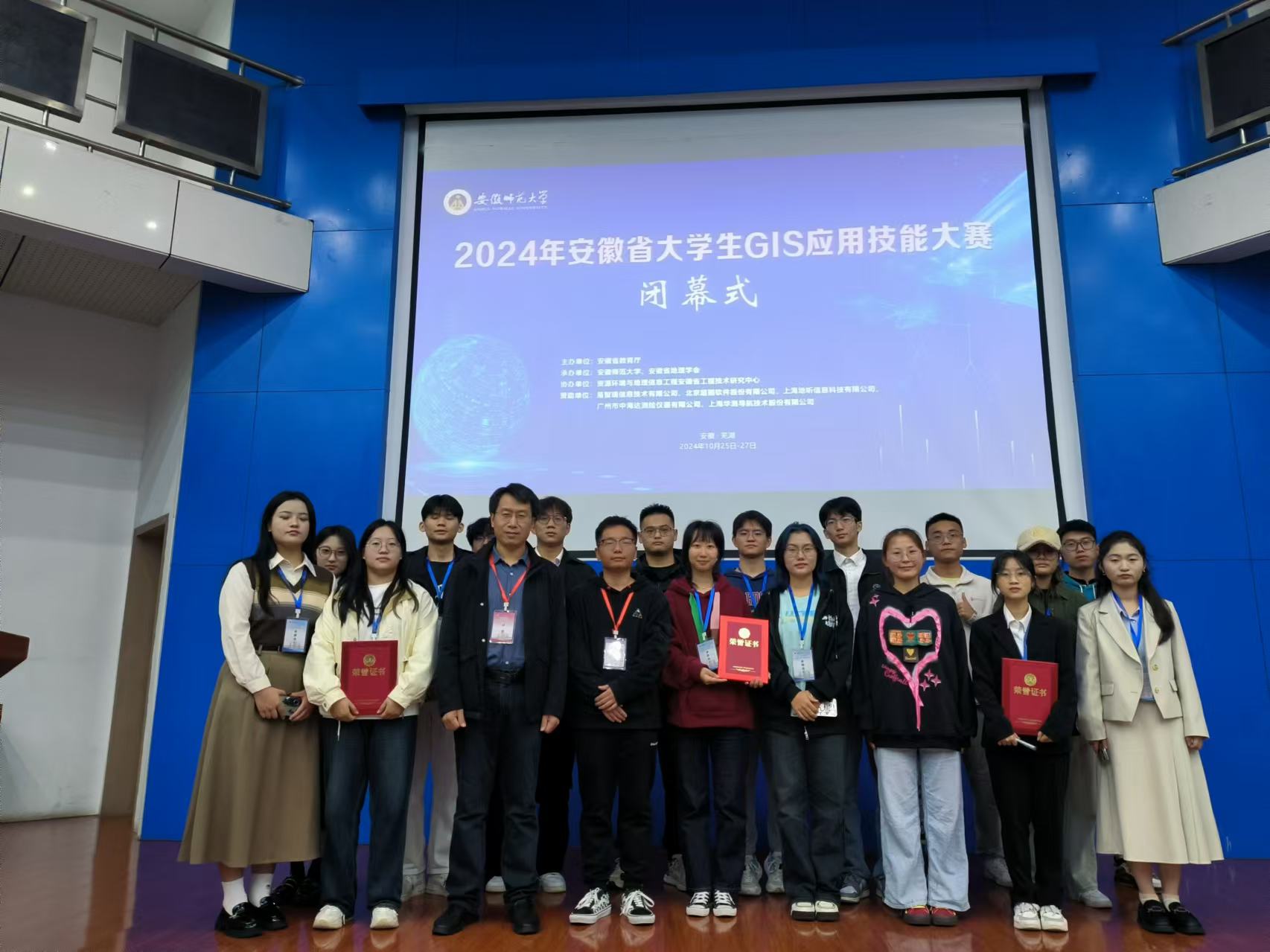 2024年10月25日-27日,由安徽省教育厅主办,安徽省地理学会和安徽师范大学承办的2024年安徽省大学生GIS应用技能大赛在安徽师范大学花津校区成功举办。本次大赛共有来自省内15所高校的138支队伍,共计156名指导教师和522名学生参加比赛。